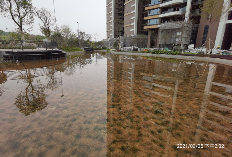 項(xiàng)目概況:項(xiàng)目人工湖分兩期實(shí)施,水深約0.6米,面積總共約2400平方米。水質(zhì)采用市政自來水。