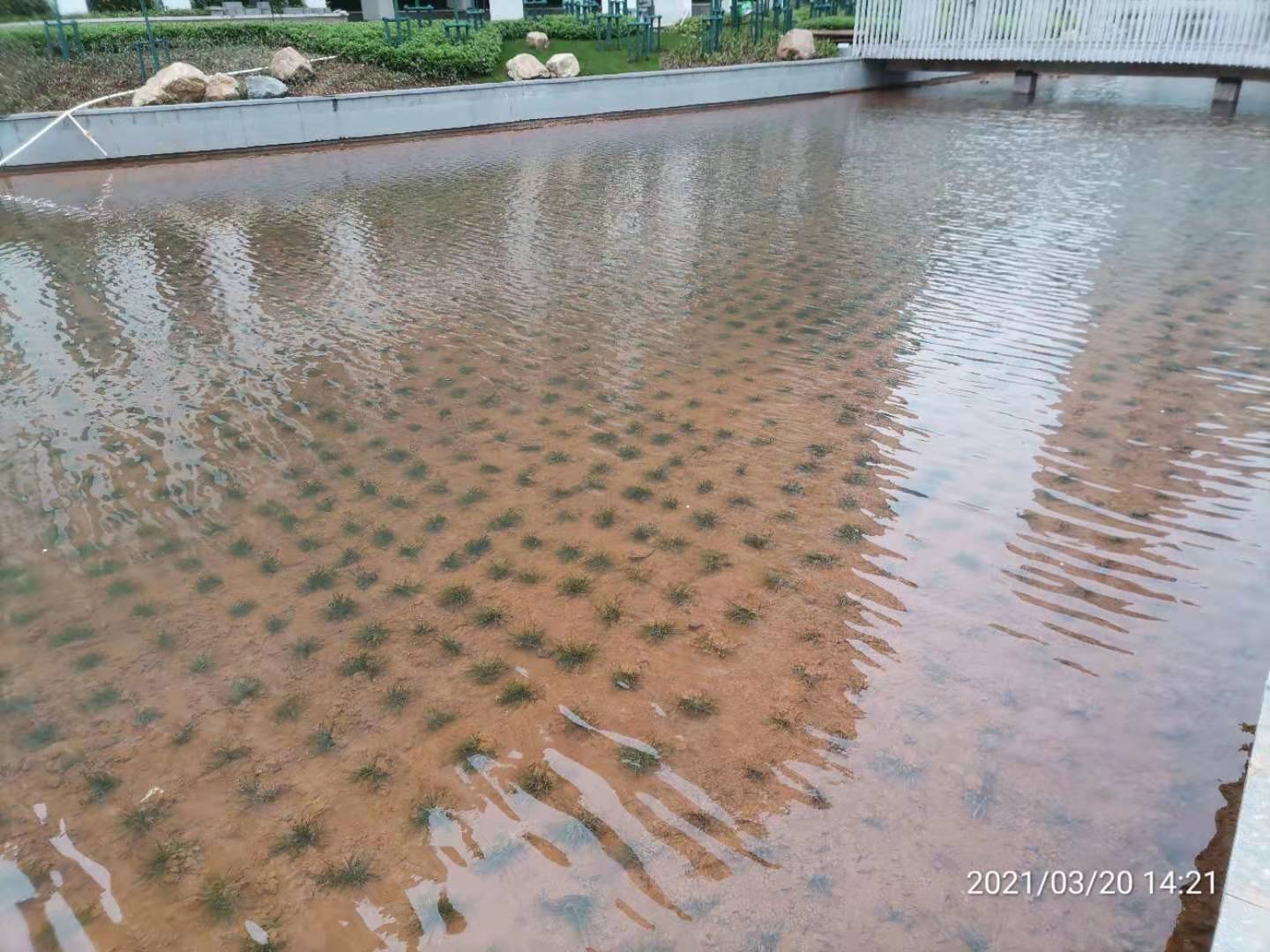 項目概況:項目人工湖水深0.6~1.0米,面積總共約2600平方米。水質采用地下水。