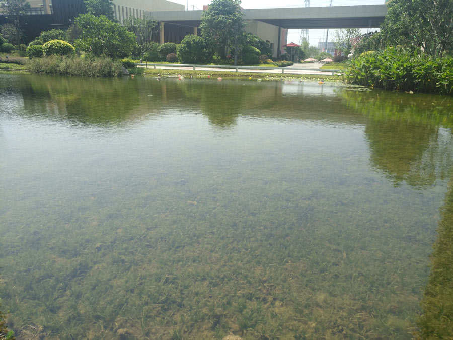 技術(shù)亮點(diǎn):采用駁岸景觀優(yōu)化、活水循環(huán)、生態(tài)修復(fù)底質(zhì)改良與凈化技術(shù)、水生態(tài)系統(tǒng)構(gòu)建技術(shù)等措施,水質(zhì)長期穩(wěn)定達(dá)到Ⅲ類以上水質(zhì)標(biāo)準(zhǔn),透明度大于1.2米,沉水植物覆蓋100%,實(shí)現(xiàn)水清岸綠、魚翔淺底的美好景象。