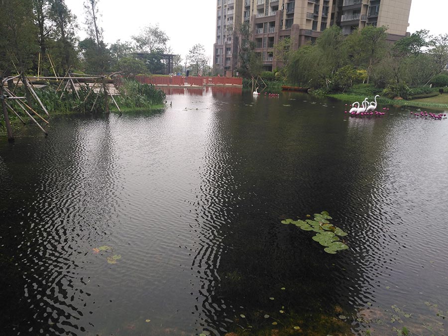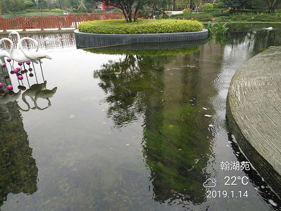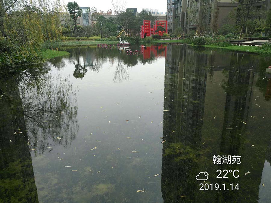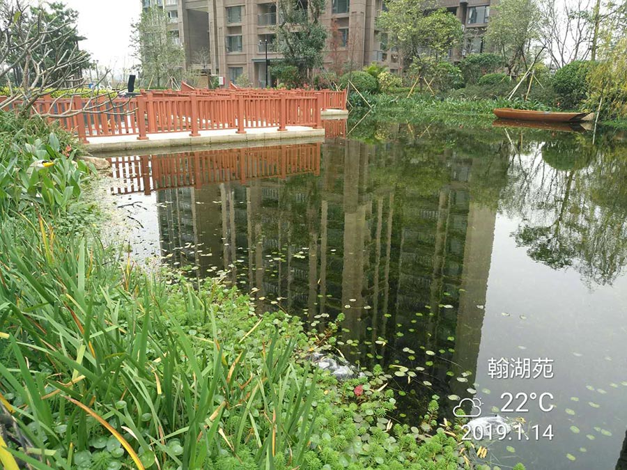 技術(shù)亮點(diǎn):采用活水循環(huán)、底質(zhì)改良與凈化、水生動(dòng)植物微生物調(diào)控等措施,經(jīng)過我司精細(xì)的標(biāo)準(zhǔn)化水生態(tài)維護(hù),自建設(shè)完成后多年以來水質(zhì)一直長期穩(wěn)定達(dá)到Ⅲ類以上水質(zhì)標(biāo)準(zhǔn),透明度大于1.2米,全段沉水植物覆蓋100%,實(shí)現(xiàn)水清岸綠、魚翔淺底的美好景象。