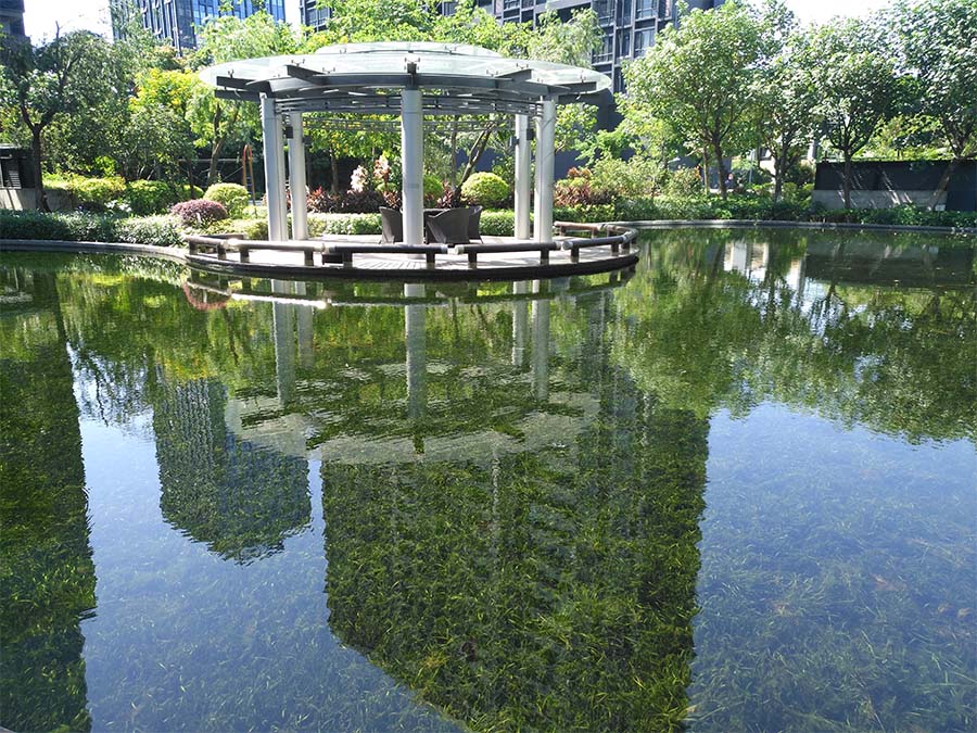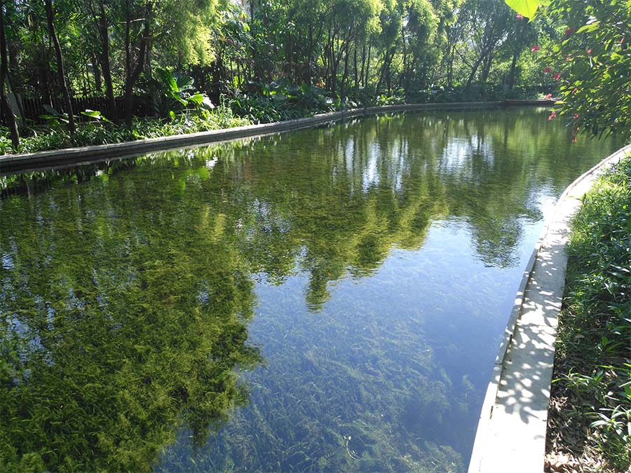 技術(shù)亮點(diǎn):采用活水循環(huán)、底質(zhì)改良與凈化、水生動(dòng)植物微生物調(diào)控等措施,經(jīng)過我司精細(xì)的標(biāo)準(zhǔn)化水生態(tài)維護(hù),自建設(shè)完成后多年以來水質(zhì)一直長期穩(wěn)定達(dá)到Ⅲ類以上水質(zhì)標(biāo)準(zhǔn),透明度大于1.2米,全段沉水植物覆蓋100%,實(shí)現(xiàn)水清岸綠、魚翔淺底的美好景象。